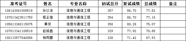 K1体育2023年硕士研究生招生第二批信息通信与工程调剂考生拟录取名单