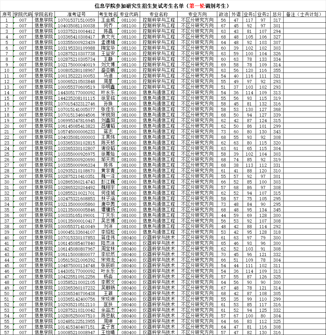K1体育参加2025年研究生招生复试考生名单(第一轮调剂考生)
