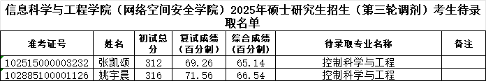 K1体育2025年硕士研究生招生第三批调剂考生拟录取名单