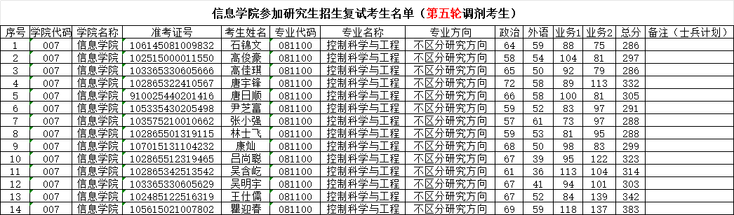 K1体育参加2025年研究生招生复试考生名单(第五轮调剂考生)
