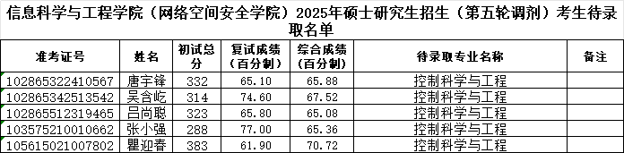 K1体育2025年硕士研究生招生第五批调剂考生拟录取名单