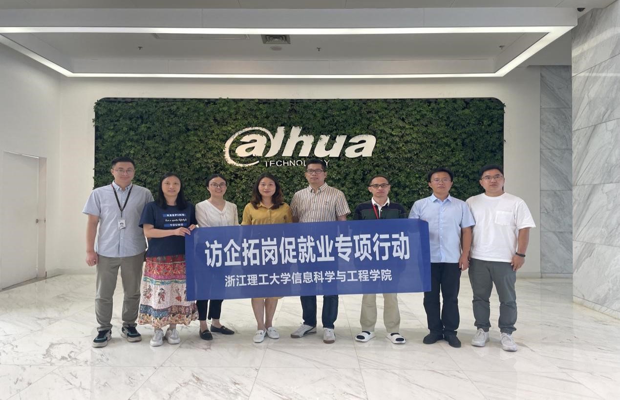 为认真贯彻落实教育部访企拓岗促就业专项行动的要求,拓展就业渠道、深化供需对接,7月15日下午,公司党委书记苏丽辉带队前往浙江大华技术股份有限公司进行走访调研活动。副经理赵新龙、副书记许丽芬、电子信息工程系副主任鲍佳、就业辅导员司浩杰等陪同调研。大华技术股份有限公司人力资源总监沈海峰、员工代表图像算法部负责人王松、招聘经理刘灏、袁晓辉热情接待并参加座谈。