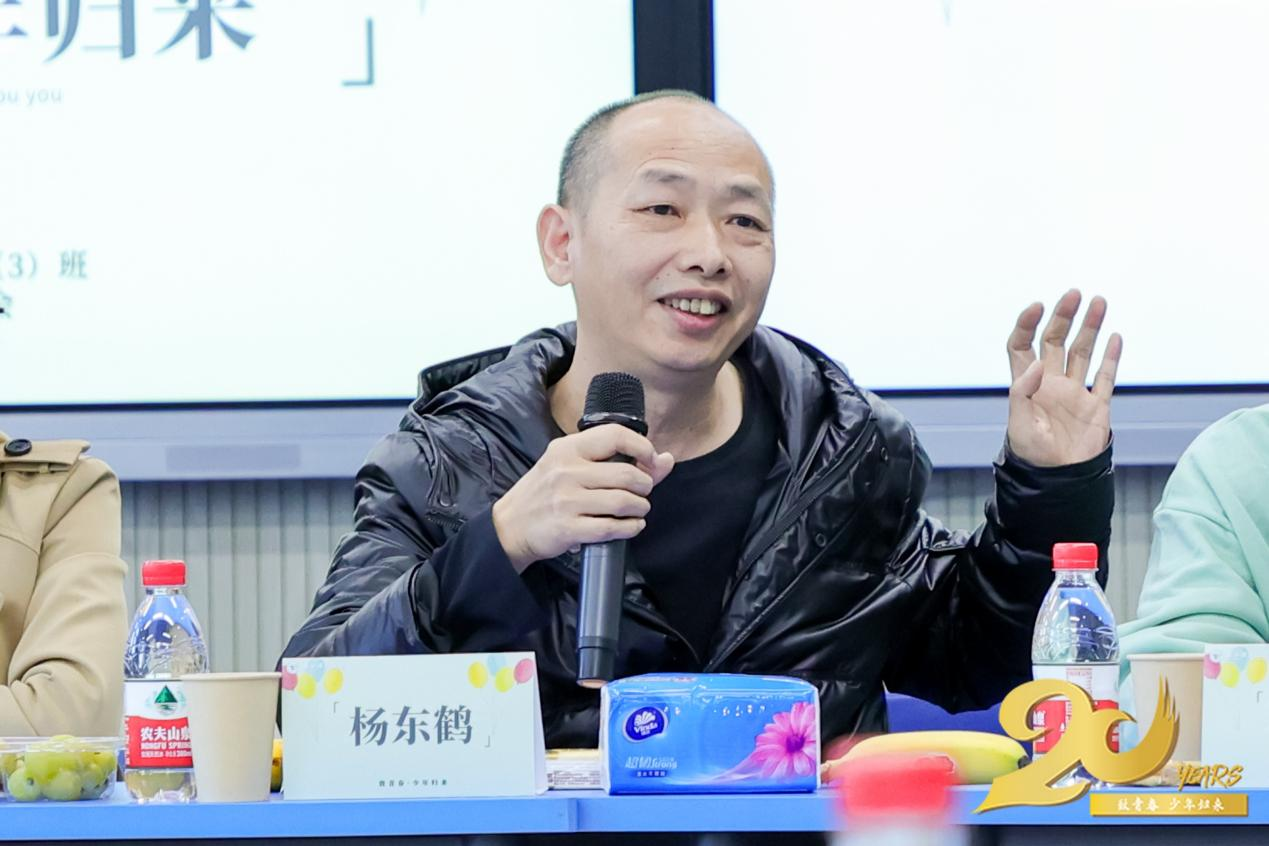 杨东鹤老师看到同学们,回忆起作为班主任时期的经历,也聊到目前同学们的工作和家庭,希望同学们多回校看看。