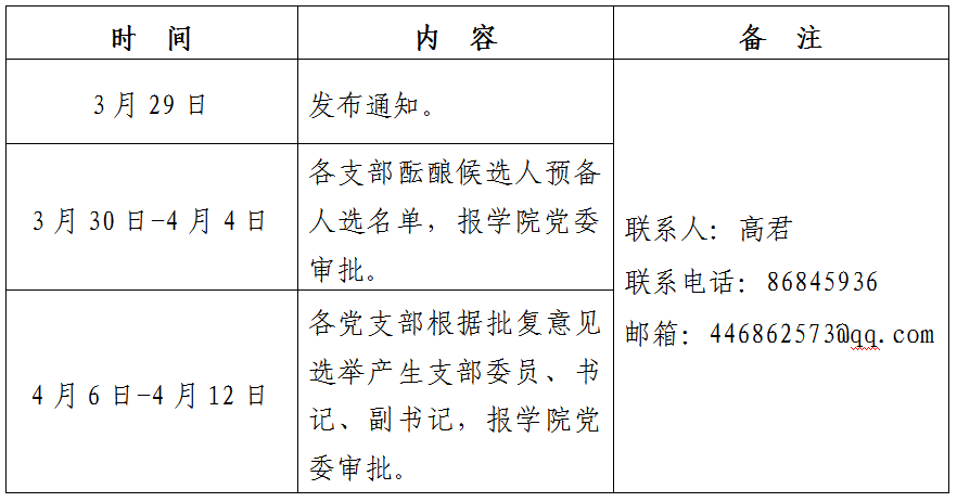 为加强公司基层党组织建设和党员教育管理,充分发挥党支部战斗堡垒作用和党员的先锋模范作用,促进公司党建工作提质增效,根据《中国共产党章程》《中国共产党支部工作条例(试行)》《中国共产党普通高等公司基层组织工作条例》等有关文件规定,结合公司关于党支部工作的指导意见,经公司党委研究,决定开展党支部设置调整工作,同时进行支部委员选举工作。具体事项通知如下: