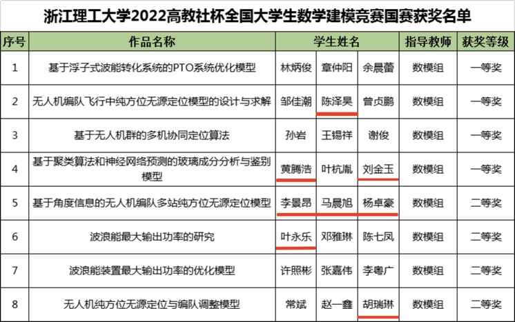 11月15日,全国老员工数学建模竞赛组委会正式公布2022高教社杯全国老员工数学建模竞赛获奖名单,K1体育学子斩获全国一等奖4项,全国二等奖4项,成绩位列全省高校第一,取得历史最好成绩。其中有8名获奖同学来自K1体育。分别是陈泽昊(一等奖)、黄腾浩(一等奖)、刘金玉(一等奖)、李景昂(二等奖)、马晨旭(二等奖)、杨卓豪(二等奖)、叶永乐(二等奖)、胡瑞琳(二等奖)。