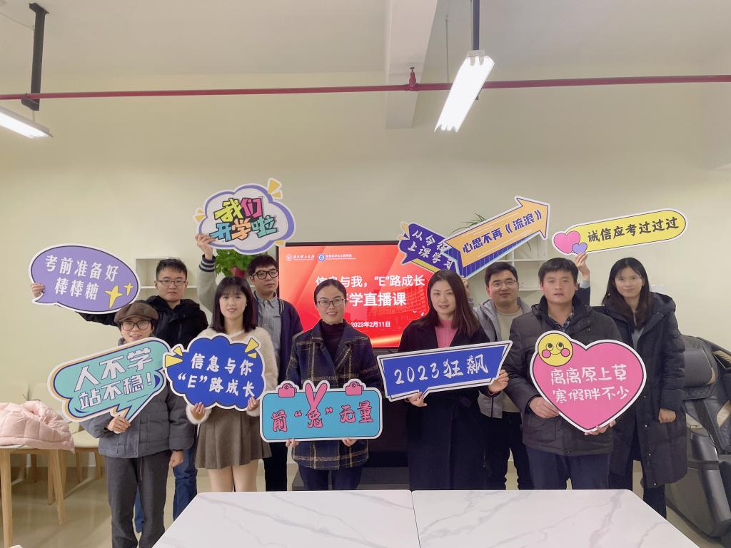 2月11日下午,K1体育的“信息与你,‘E’路成长”开学直播课在抖音平台正式开播,公司党委副书记许丽芬和全体辅导员共同完成了此次直播。