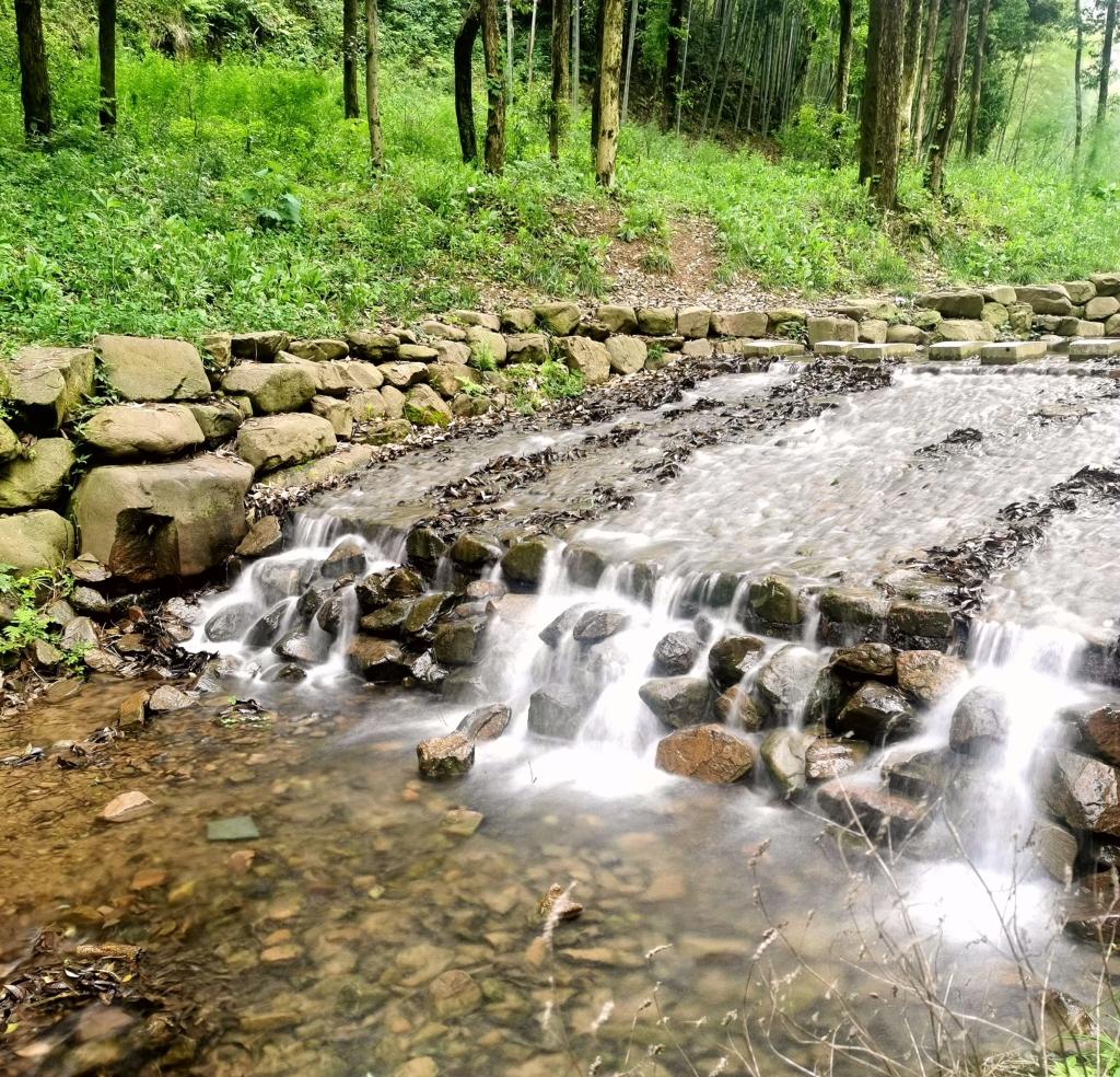 在饱含自然与乡土气息的龙坞茶村,老师们细品了使用自然山泉水冲泡的山茶,游走在连绵起伏的茶园,感受自然和乡村的清凉与静谧。沿着山路拾级而上,郁郁葱葱的茂盛植被以及山上流淌下来的清冽的山泉水,充分体现了“绿水青山就是金山银山”的实践理念。