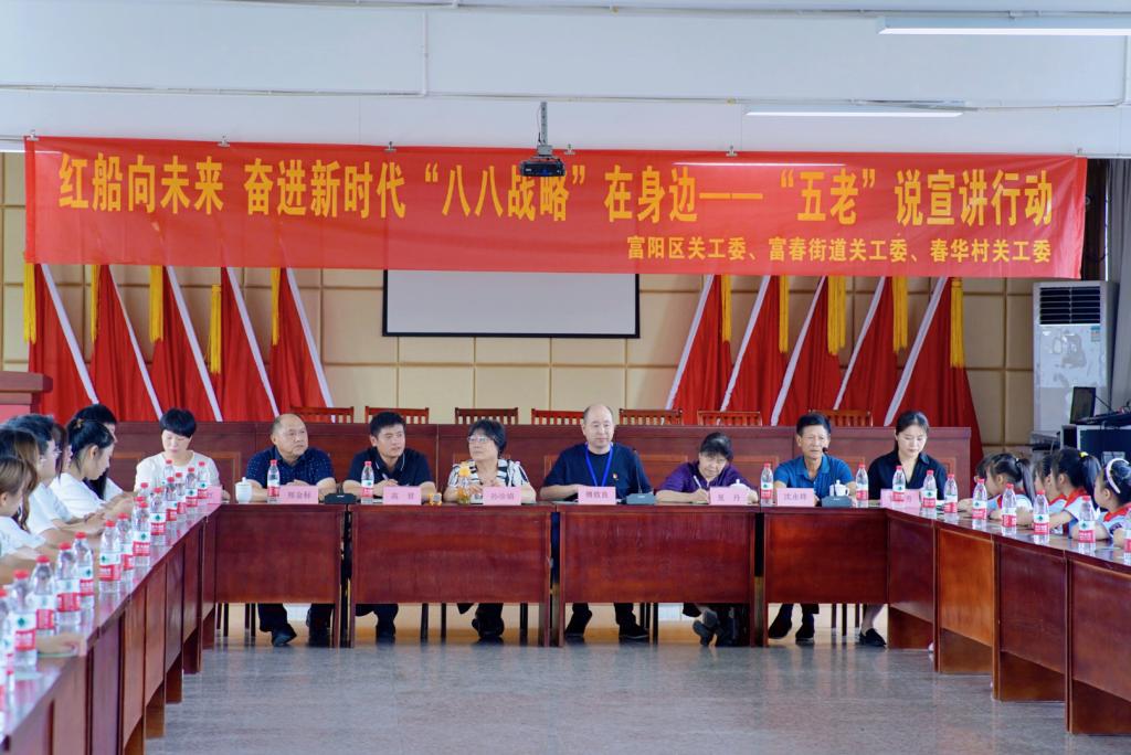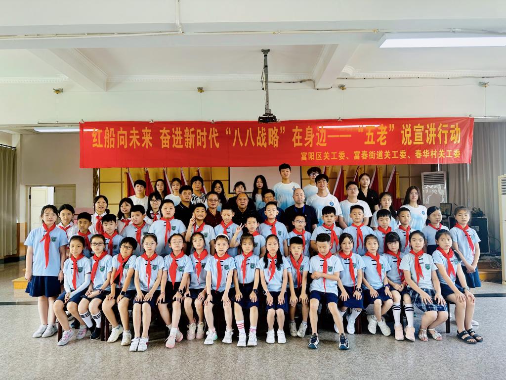 7月10日上午,K1体育“春华循迹悟振兴”暑期社会实践团员工与杭州市文海实验公司中员工,以及富春第八小学小员工共同参加在富阳区富春街道春华村举办的“红船向未来,奋进新时代‘八八战略’在身边——‘五老’说”宣讲活动,通过循迹溯源、讲述红色故事,引导青少年员工深入学习贯彻习近平新时代中国特色社会主义思想,感悟我省深入实施“八八战略”推动高质量发展,奋力谱写中国式现代化浙江篇章的精神,进一步增强奋斗精神与爱国意识。受邀进行宣讲的是富阳区富春街道春华村老书记郑金标、全国种粮大户沈永祥,活动由春华村党委书记傅致良主持,公司辅导员、暑期社会实践团指导老师高君参加活动。