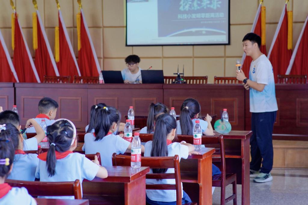 随后,由大、中、小员工一同进行红色文化学习和科普知识学习活动。K1体育“春华循迹悟振兴”暑期社会实践团队长吴张杰讲述“清澈的爱只为中国”的思政微课,引发中小员工们增强对伟大的中国共产党的认识,激励同学们听党话、感党恩、跟党走。随后吴张杰与实践团成员王天磊共同为中小学同学带来计算机知识科普和人工智能机器人、多功能八音盒等研发设计展示,激发同学们强烈的追求科技创新的热情。