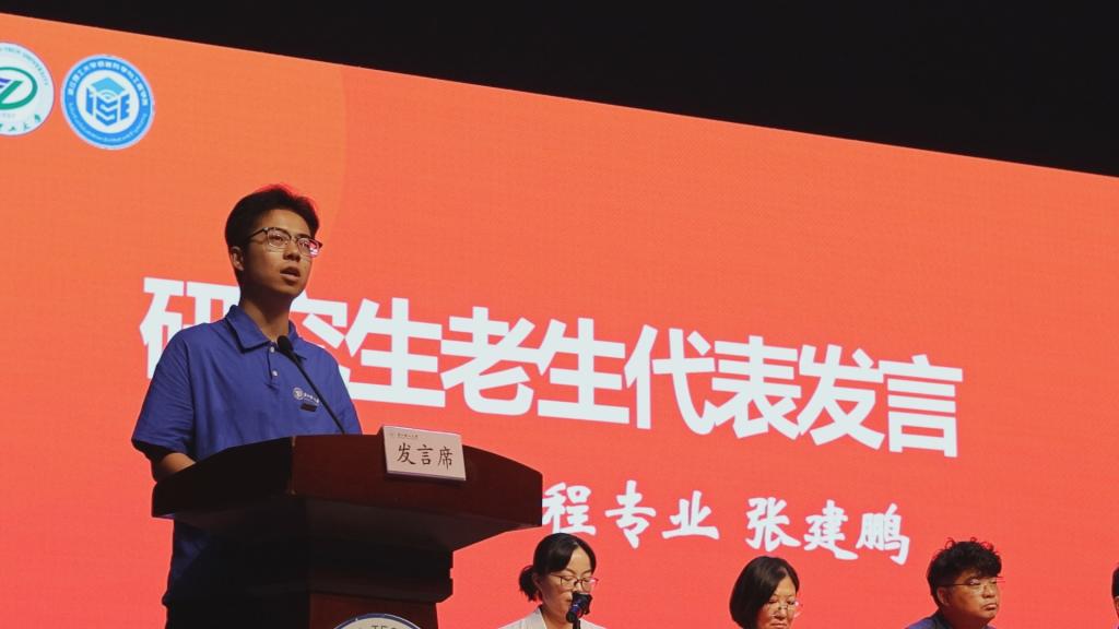 22级控制工程专业研究生张建鹏、23级电气类专业新生李度分别代表在校生和新生发言。张建鹏结合自己在公司的学习、科研历程,同新生们共勉,希望学弟学妹们都可以找到属于自己的青春之路,发扬“博学敦行、厚德致远”的理工精神,坚持初心、以梦为马,不负青春、不负韶华!李度表示现在是十二年奋斗的终点,也是崭新的起点,面对未来,将更加严格的要求自己。青年就该于波涛上踏浪而行,于江河下逆水行舟,于狂风中扶摇而上,为青春之花渲染奋斗的底色。