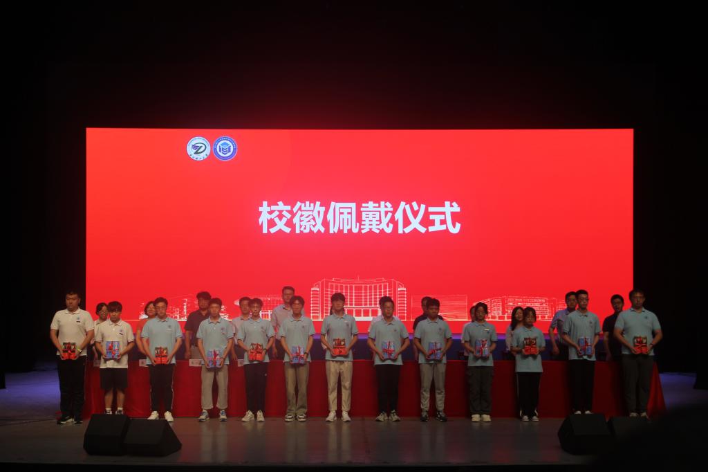 主席台领导为本科生、研究生员工代表佩戴校徽,赠送书籍《习近平与老员工朋友们》和《终身学习》。最后,全体新生进行了庄严的入学宣誓。