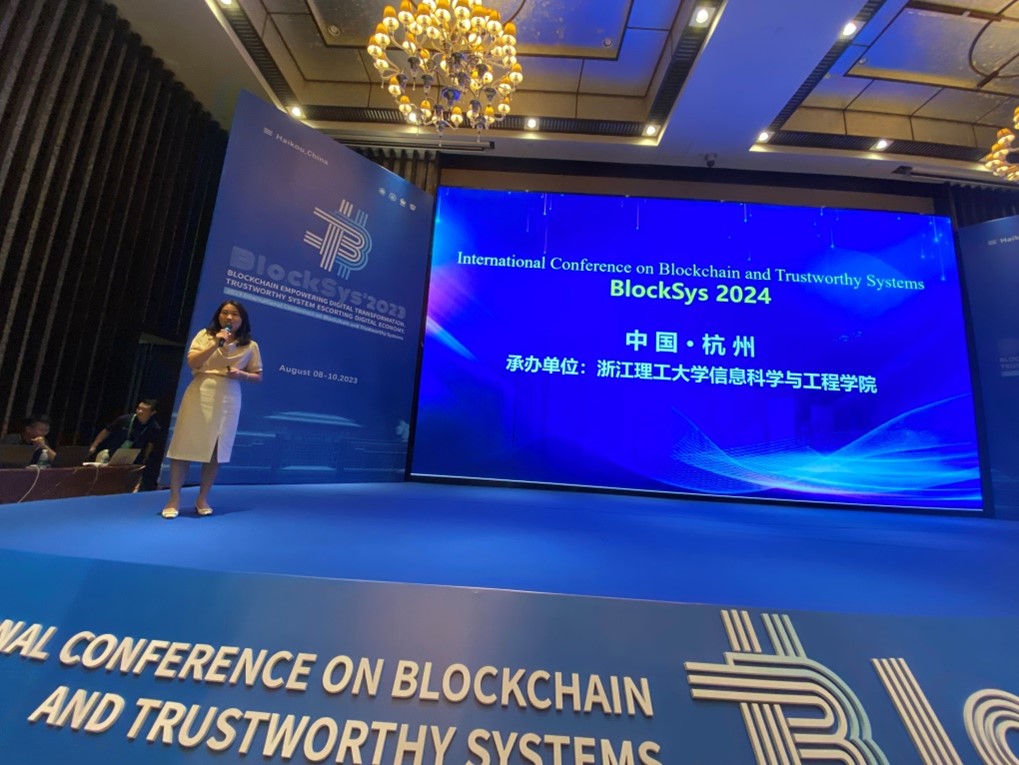 8月9日,公司党委书记苏丽辉一行受邀参加区块链与可信系统国际会议(Blocksys 2023)。会议由海南师范大学、海南省人工智能学会、中山大学主办,海南师范大学信息科学技术公司承办。