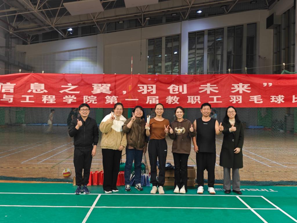 经过一个下午的激烈角逐,A组公司办公室与教科办联队和测控系代表队携手突围,B组学工办代表队和实验教学中心代表队并肩出线,成功入围首届教职工羽毛球赛的四强。最终,实验教学中心代表队、公司办公室与教科办联队和测控系代表队分别获得比赛的冠、亚季军,公司党委副书记许丽芬为获奖的队伍颁发了奖杯和奖品。