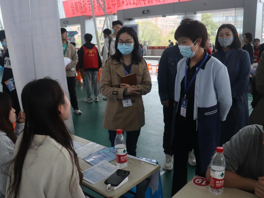 公司党委书记苏丽辉、副书记许丽芬、学工办主任朱佳琳、就业辅导员司浩杰到招聘会现场与用人单位交流沟通,全面了解用人单位人才需求以及对公司人才培养、就业服务的意见建议。同时亲切鼓励参加招聘会的同学们明晰个人定位、积极主动就业。