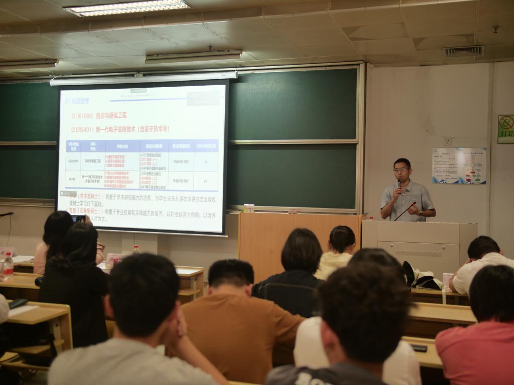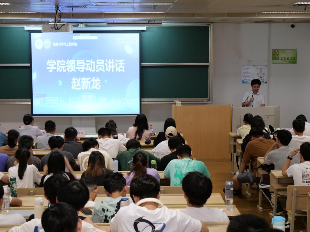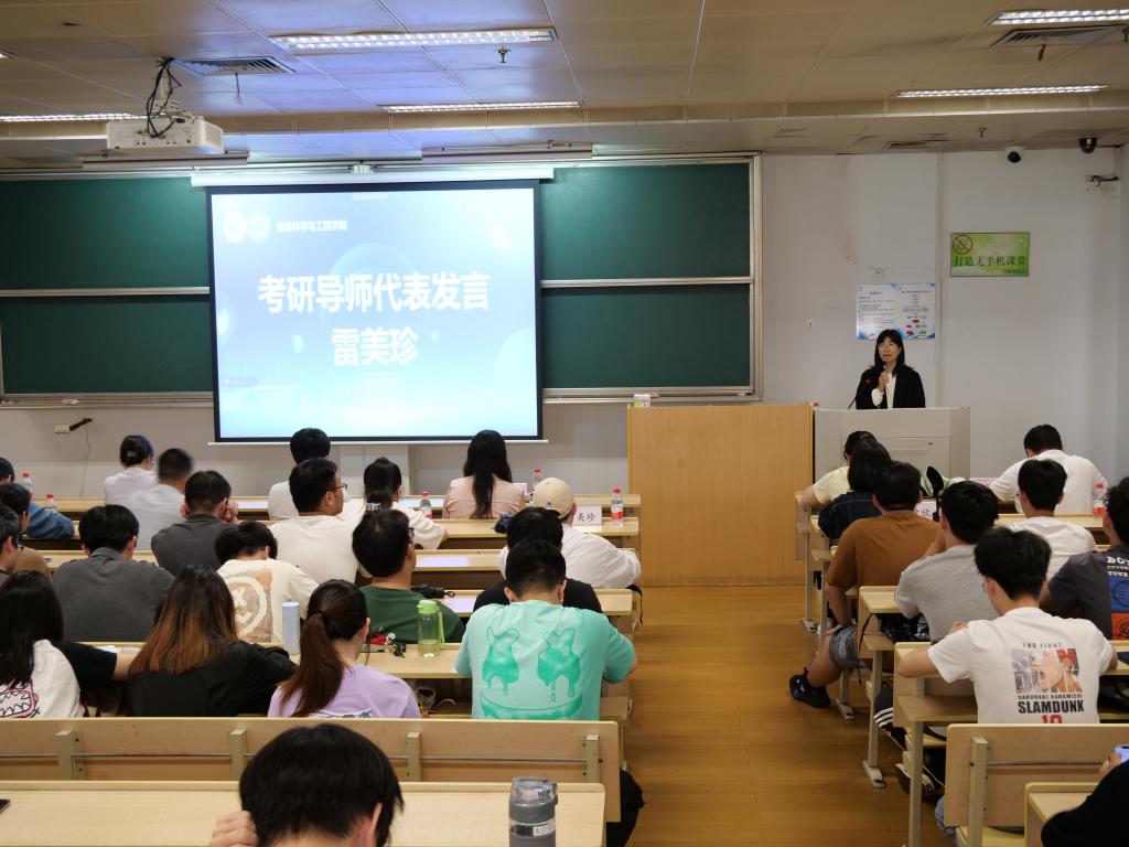 赵新龙从明确目标、做好规划、持续努力等方面做动员讲话。他强调“考研是人生获取知识的第二次巅峰”,“就业是大家迈入社会的第一课”,希望全体2025届的信息学子们砺志于行,知难而进,以“百折不挠,不达目的不罢休”的拼搏精神,攀山至顶,行海达岸。