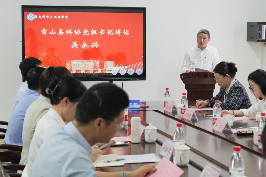 吴永兴讲话。他介绍了常山县的基本情况以及常山县科协党组在助力科技发展、人才引育方面的举措,提出希望双方在未来不断完善合作机制,强化载体建设,促进资源整合,共同开创党建工作的新局面。