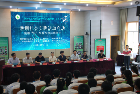 在党的二十届三中全会召开之际,7月15日上午,信息科学与工程学经理兴暑期社会实践活动暨银“信”果夏令营启动仪式在长兴县水口乡中心小学报告厅举行。公司党委书记苏丽辉、党委副书记许丽芬、长兴县教育局党委委员、副局长吴涛、长兴县科协副主席茹建良、长兴县水口乡中心小学董事长徐建忠、新四军苏浙军区纪念馆办公室主任徐丽霞、浙江井林建设有限公司副总经理高有华等领导出席,现场120余名师生共同参与活动。