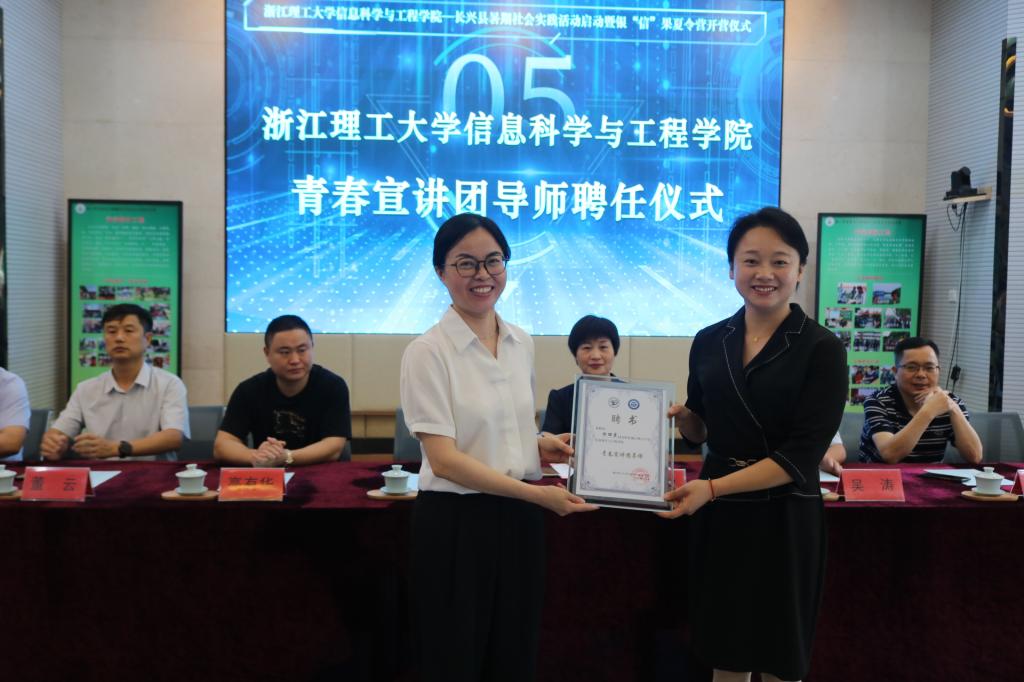 随后,许丽芬向徐丽霞颁发“青春宣讲团导师”聘书。