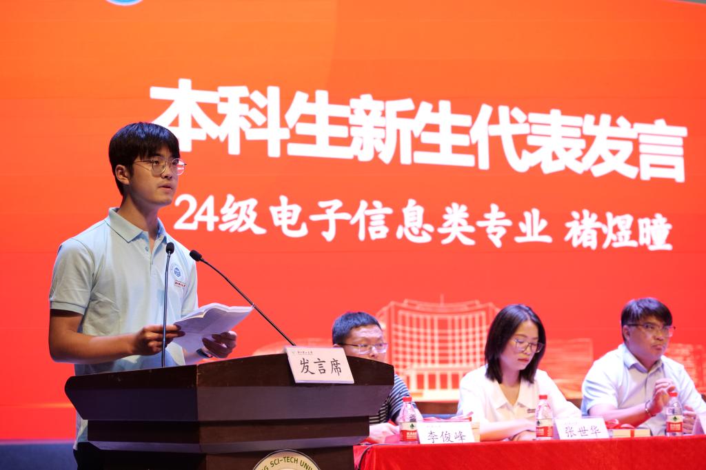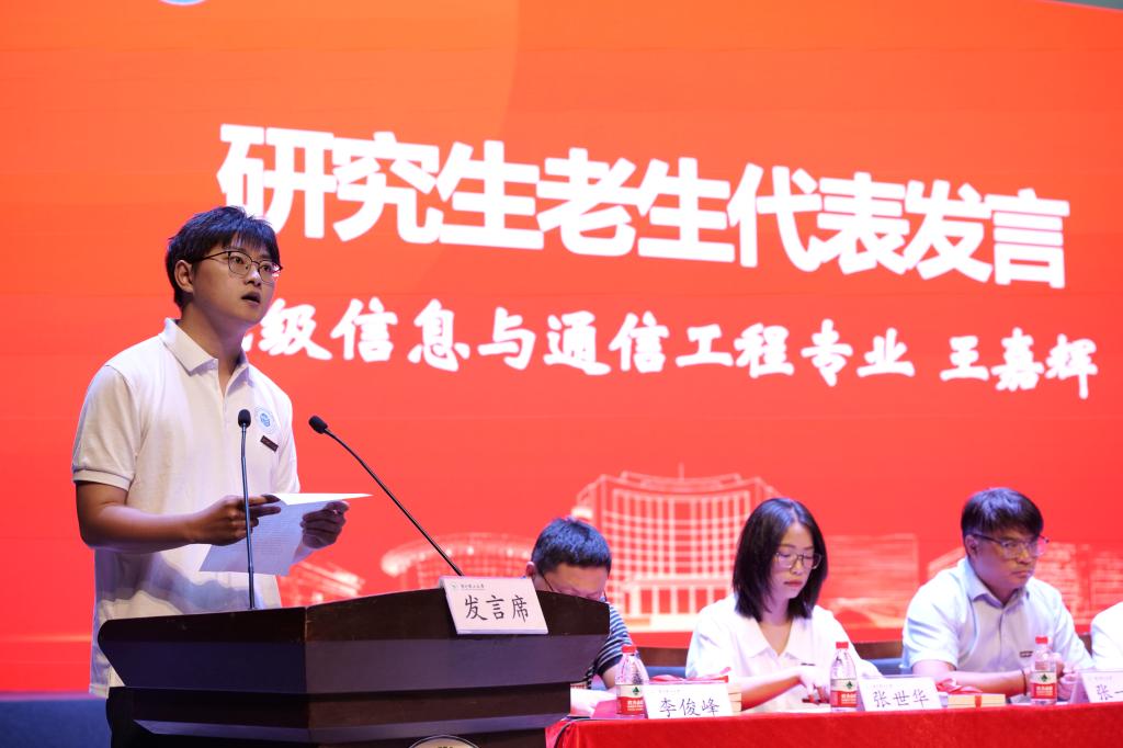 22级信息与通信工程专业研究生王嘉辉、24级电子信息类专业新生褚煜曈分别代表在校生和新生发言。王嘉辉结合自己读研以来的学习科研经历,激励学弟学妹们,扎实专业基础,勇于科研创新,在浙理遇见更好的自己,活出最精彩的人生!褚煜瞳同学表示老员工活是自由与自律的完美结合。面对未来,每一位浙理信息人都将崇尚科学、勇于探索、报国兴学、自强不息,成为这个时代下最勇敢的追梦者,实现自己的人生价值,创造出更加美好的未来。
