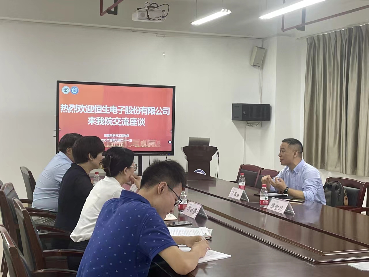 开营仪式结束后,双方进行了座谈交流。泮军伟介绍了恒生电子股份有限公司的发展方向以及行业需求,分析了近年来金融行业的走向,强调了电子信息技术对金融行业的影响。苏丽辉表示期待未来与恒生电子进一步深入开展合作,建立数字技术工程师培训基地,搭建更高水平的科研平台。双方还就员工企业实习实践、校企人才培养合作、科研竞赛成果转化等开展了深入交流。