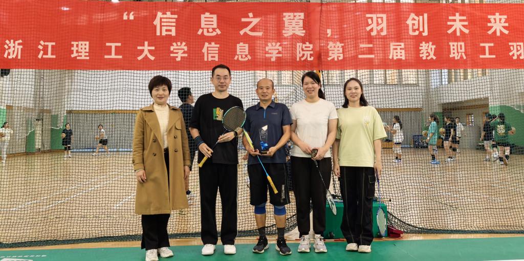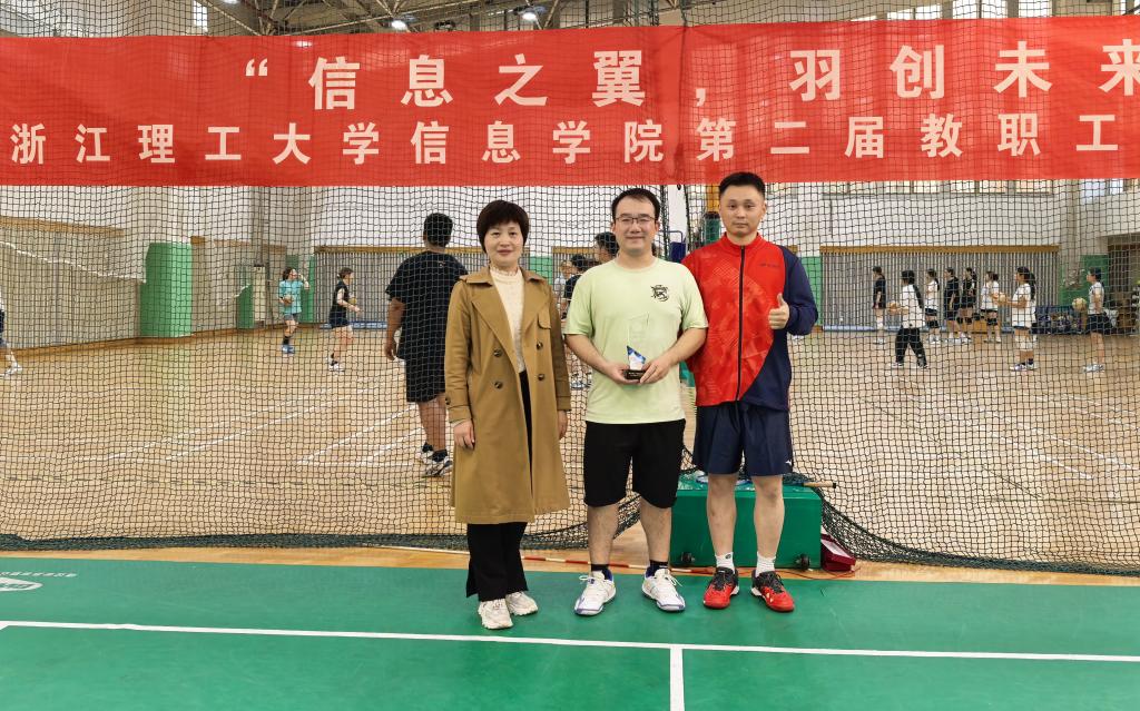 在比赛中,参赛老师本着“友谊第一、比赛第二”的精神,在赛场上全力以赴、奋勇拼搏,展示出敢打敢拼,永不言弃,拼搏向上的体育精神。精彩的羽球对决赢得了现场观众的阵阵掌声。比赛过程中,参赛选手相互加油鼓劲,场上场下充满了欢声笑语,体现了信息公司教职工之间团结友善的精神风貌。经过三个多小时的激烈角逐,通信队获得了冠军、实验中心队获得亚军、电子系和综合教科办并列获得季军,同时比赛活动的成功举办离不开测控队、自动化队和电气队老师们的大力支持。苏丽辉书记分别给获得冠军、亚军和季军的队伍颁发了奖杯。