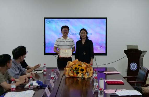 公司还特别为新入职的专任教师聘请了成长导师,以加强团队团队的梯队培养,苏丽辉为成长导师代表赵新龙颁发了聘书。