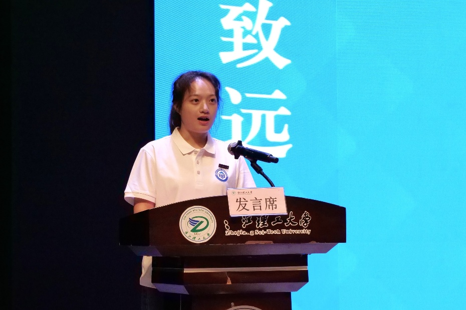 控制工程专业硕士研究生林智言结合自身成长经历,鼓励新生扎实专业基础、勇于创新,在浙理不断超越自我,活出精彩人生。她希望新同学要把学习与团队合作并重,以实际行动践行“厚德致远、博学敦行”的校训精神。