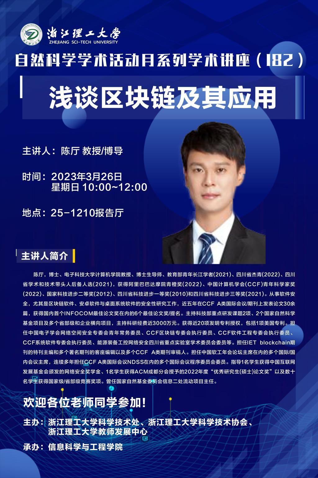 陈厅教授和伍前红教授围绕“区块链的技术本质、核心特性、主要分类和发展历程”为公司青年教师和在读研究生做了题为《浅谈区块链及其应用》的学术报告。