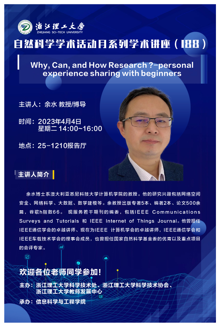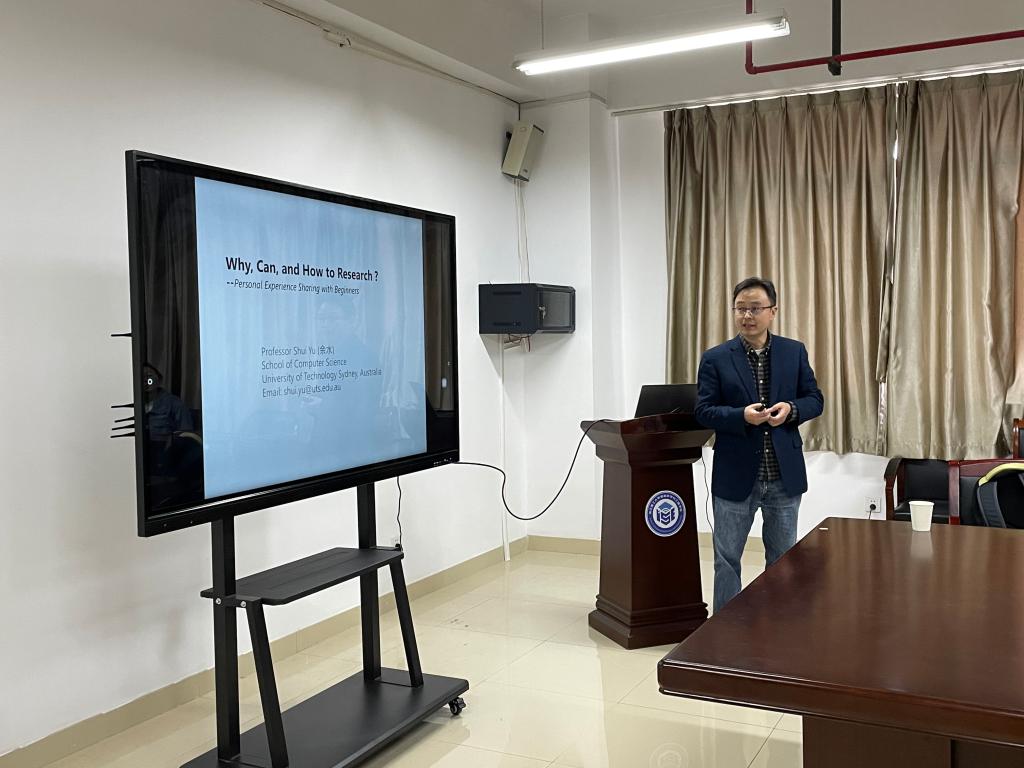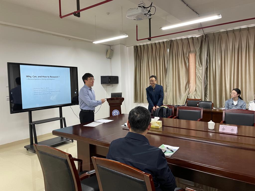 2023年4月4日,星期二,下午14:00,澳大利亚悉尼科技大学计算机公司余水教授来公司进行学术交流,为公司青年教师和在读研究生做了题为《Why, Can, and How Research ?-personal experience sharing with beginners》的学术报告,本次会议由K1体育经理沈剑主持,童基均副经理、高金凤教授(经理助理)出席。