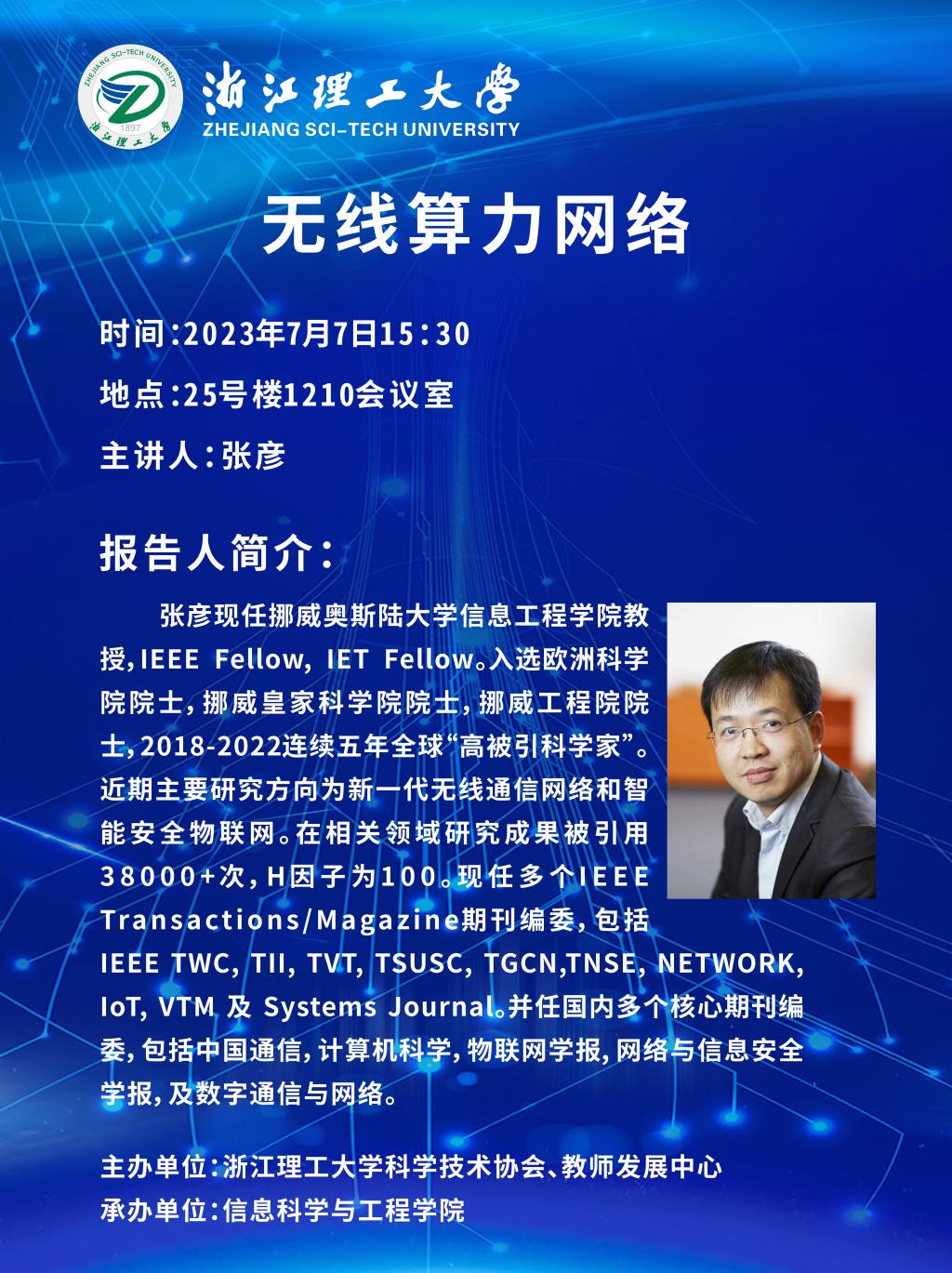 2023年7月7日下午,K1体育邀请了挪威奥斯陆大学张彦教授、桂林电子科技大学丁勇教授来访并分别作前沿学术报告“无线算力网络”和“区块链赋能工业互联网”。