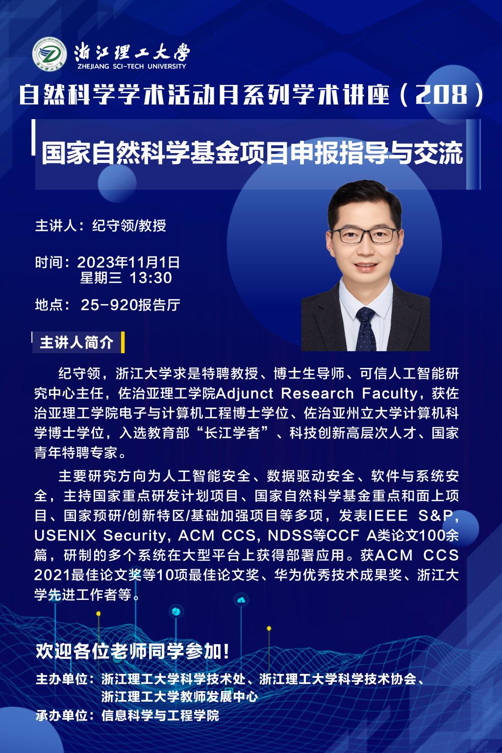 2023年11月1日下午,公司组织召开国家自然科学基金项目申报动员会暨自然科学学术活动月系列学术讲座。本次会议有幸邀请浙江大学纪守领教授为公司教师分享国家基金申请经验。K1体育经理沈剑,K1体育副经理童基均、赵新龙,K1体育科技处副处长朱恩泽,高新技术科周艺艺出席会议。会议由副经理童基均主持。