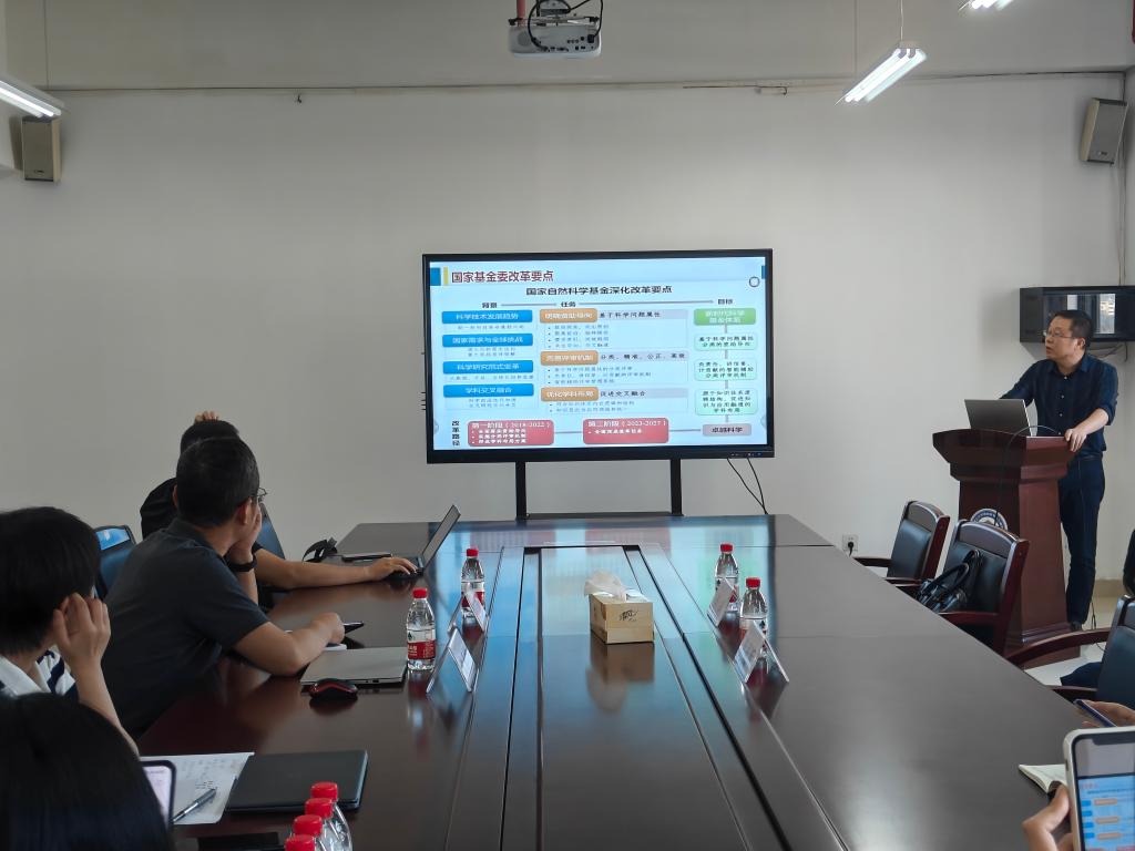 李教授根据国家自然科学基金深化改革要点,阐述申报国家自然科学基金项目评审流程、撰写,详细介绍基金申请过程的关键要素,并结合自身获批国家自然科学基金项目的心得进行分享和交流,对教师申报国家自然科学基金给出建设性的意见与建议。