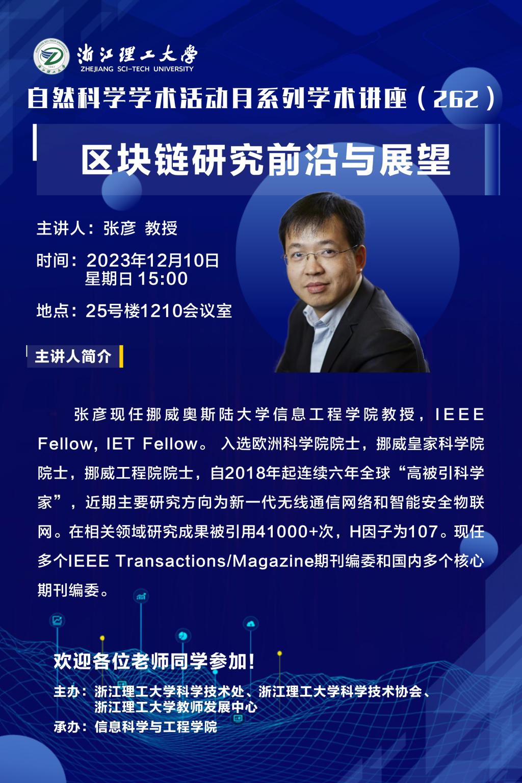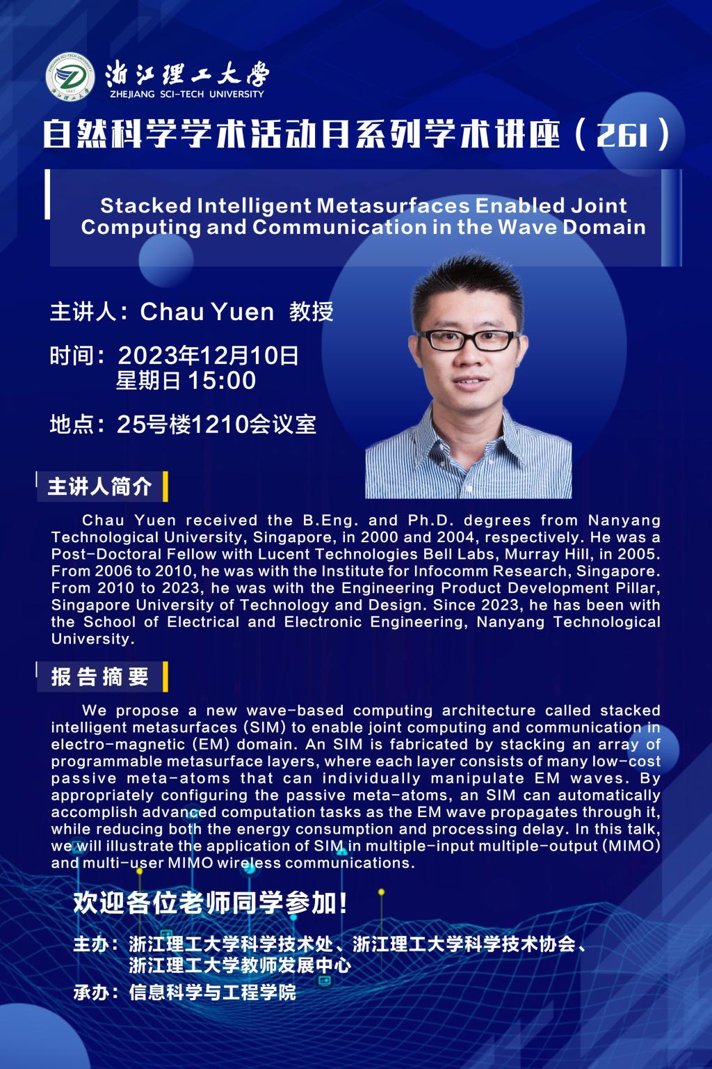 2023年12月10日下午,K1体育邀请挪威奥斯陆大学张彦教授,新加坡南洋理工大学Chau Yuen教授来访并分别做前沿学术报告“区块链研究前沿与展望”,“Stacked Intelligent Metasurfaces Enabled Joint Computing and Communication in the Wave Domain”。