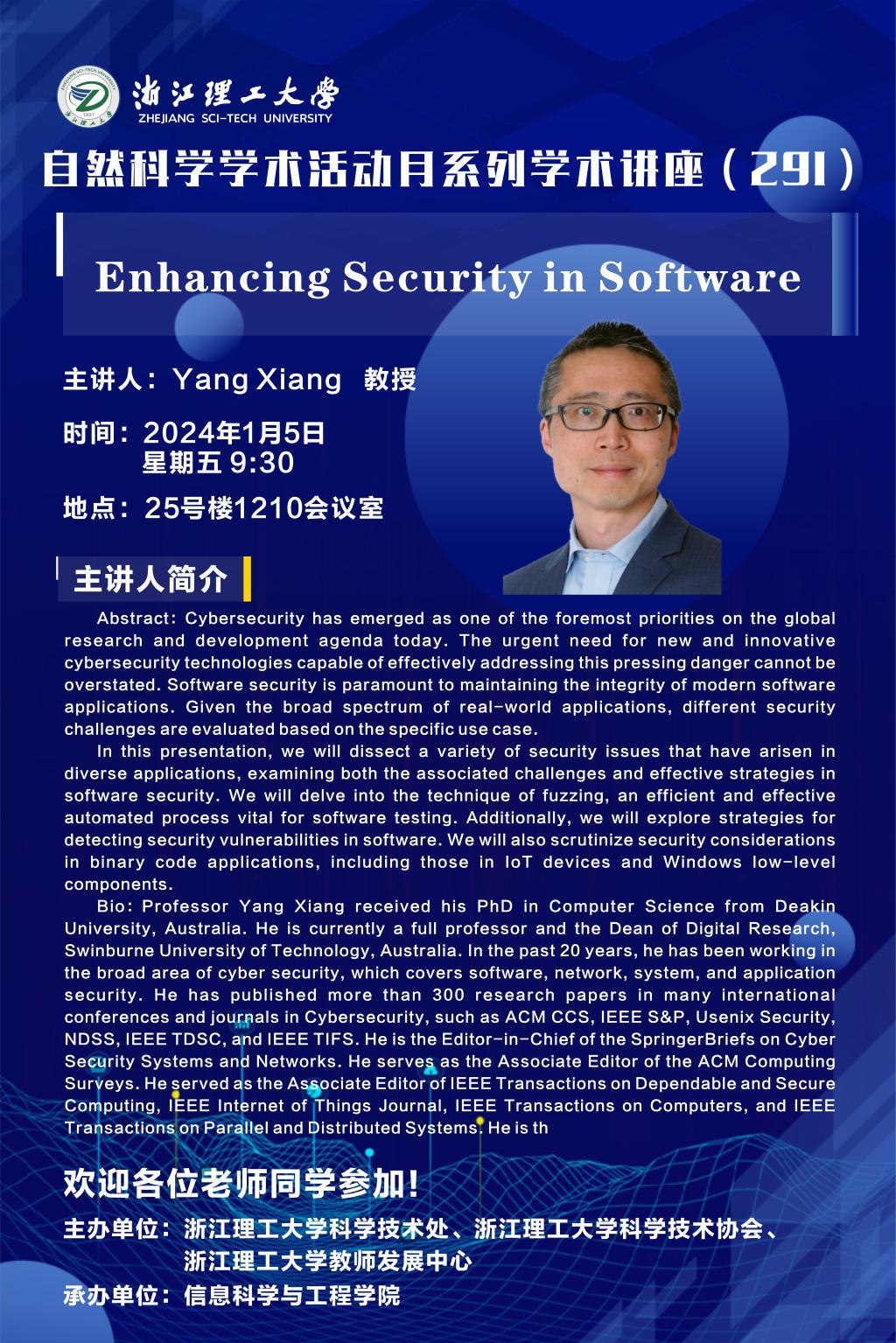 2024年1月5日上午,K1体育邀请澳大利亚斯威本科技大学项阳教授来访并做前沿学术报
