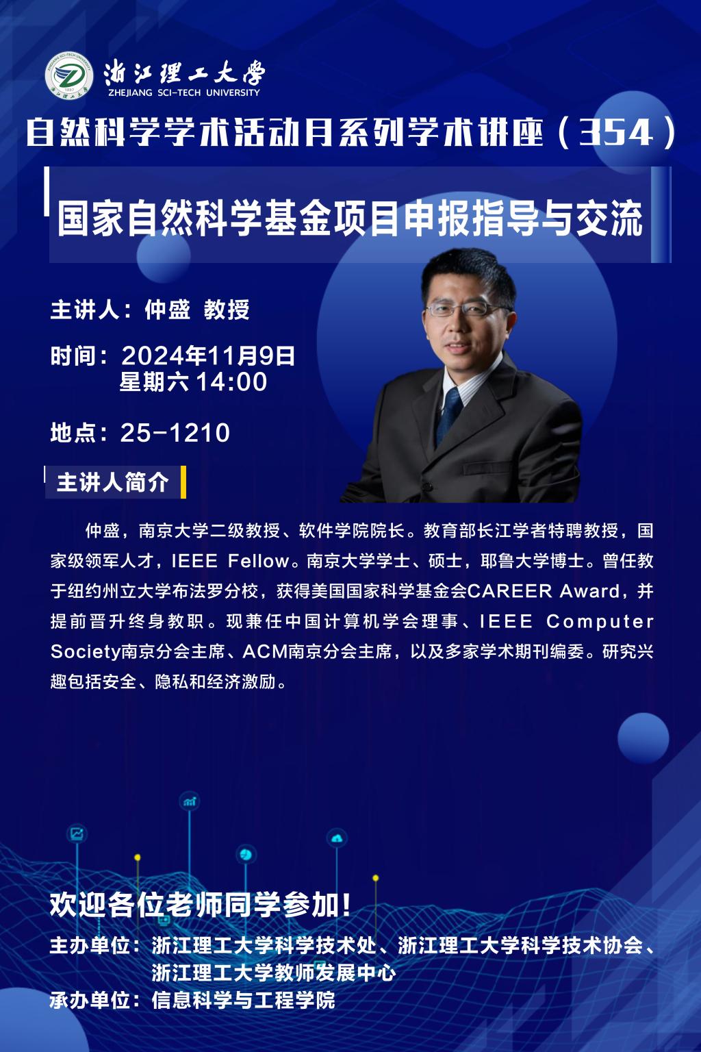 2024年11月9日,信息科学与工程公司2025年度国家自然科学基金申报启动会暨学术讲座在25-1210会议室举行。会议邀请南京大学仲盛教授为公司教师分享国家基金申请经验。仲盛教授就如何凝练选题、突出创新、立意构思、夯实研究基础、完善申报书等方面向参会教师分享了经验。与会教师就基金申报过程中遇到的问题进行了深入交流。