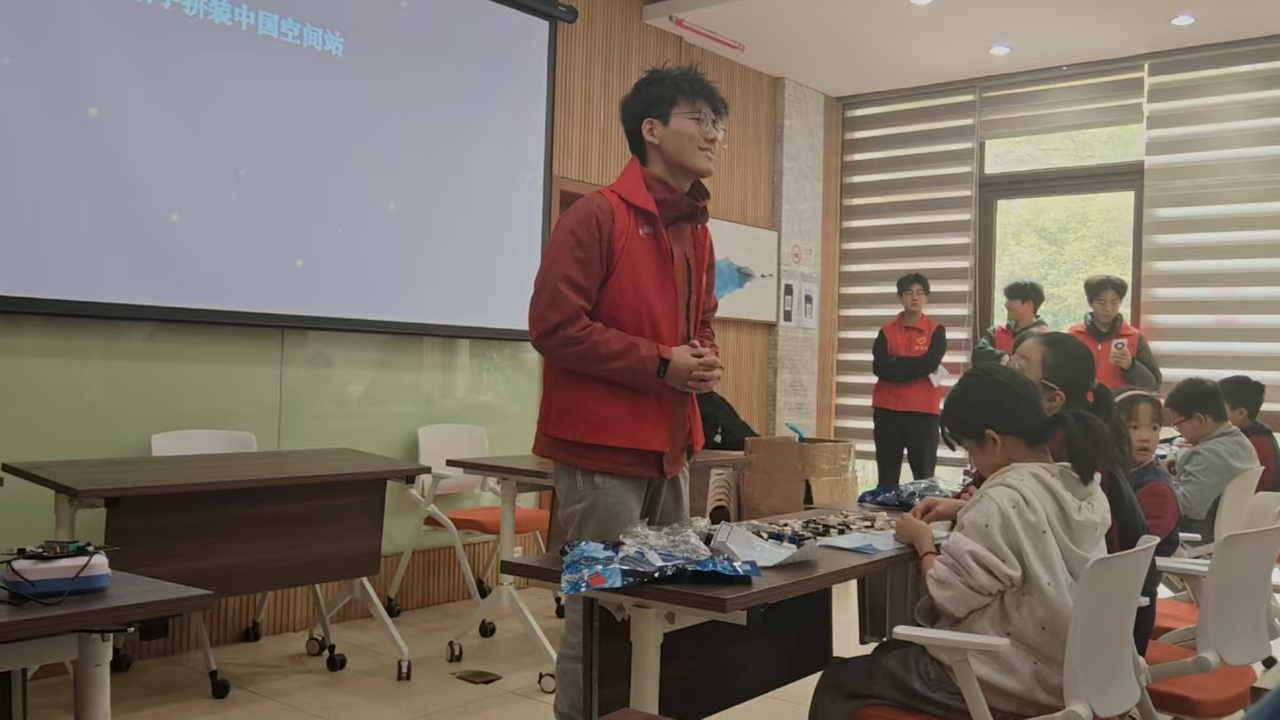3月30日下午,K1体育的师生走进海天社区党群服务中心,为社区少年儿童带来了一场别开生面的“去天宫看看”航天科普志愿服务活动。