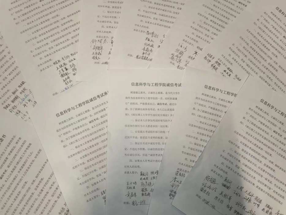 会议的最后,在场的所有同学一起学习并签订了诚信考试承诺书。