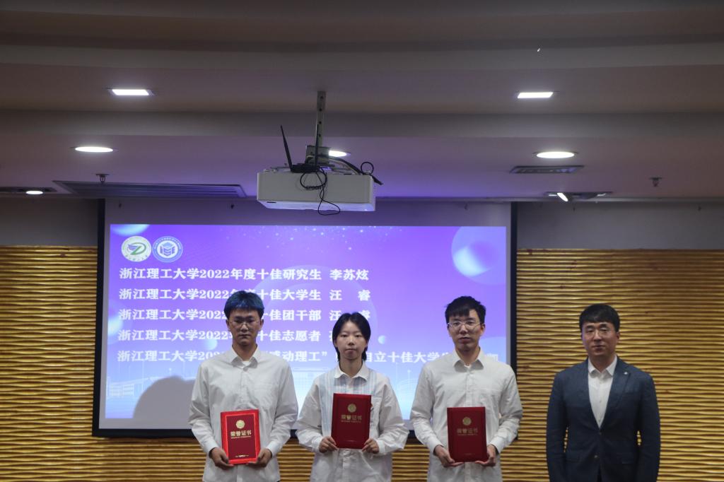 表彰环节公司对2022年度先进集体及优秀个人进行了表彰。国家奖学金获得者、十佳老员工汪睿作代表发言,表达对公司公司老师培育的感激之情,并结合自身经历分享了其脚踏实好学知识、大胆尝试不惧失败和心无旁骛刻苦钻研的成长感悟。研究生代表周家豪带领在场的全体同学进行学术诚信宣誓。同学们一致承诺,在学习科研活动中,会遵守学术规范,坚守学术诚信,立志成长为有理想、敢担当、能吃苦、肯奋斗的新时代优秀青年。