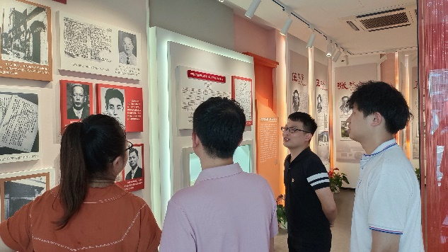 整个陈列室主要包括力挽狂澜、甘洒热血、高举义旗和根脉永续4个篇章,党支部全体成员认真观看了每一个篇章的陈列资料和历史故事。包括庄文恭、王家谟、张秋人、龙大道、李硕勋、罗学瓒、陈之一、夏曦、卓兰芳、徐英等10位革命先贤前赴后继在1927至1929这段特殊困难时期领导了浙江省委艰苦卓绝的革命工作。其中,任职时间最短的仅2天,更是先后有8位省委书记在革命中牺牲,年龄最小的牺牲时仅21岁。当看到这一个个熠熠生辉的名字,在他们最美好的年华,把生命都献给了革命、献给了马克思主义中国化事业,在场驻足观看的党员同志们每个人都感受到前所未有的震撼。“在这一特殊历史时期,也就是国民党‘四一二’反革命政变之后,党组织面临极大的生存困难,中共早期党组织在艰难困苦中不断发展,推动党组织砥砺前行的精神力量就是对马克思主义的信仰。”支部书记张烈山指出,必须坚定信仰,坚持道路自信、理论自信、制度自信和文化自信,努力学习习近平新时代中国特色社会主义思想,把其中的观点、方法自觉在实验室管理和课外科技实践中运用起来,在党的理论指引下,取得实验室发展的一系列成效。