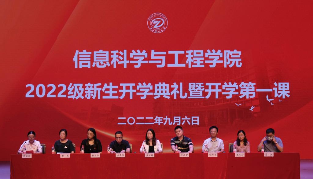 9月6日上午,公司在大剧院举行2022级新生开学典礼暨开学第一课。公司党委书记苏丽辉,2008届电子信息工程专业员工、杭州登虹科技有限公司部门经理倪庆霄、主持工作副经理童基均、副经理赵新龙,各系主任、学工线全体辅导员、新生班主任等出席会议。来自全国各地的550名22级新生参加活动。开学典礼由公司党委副书记许丽芬主持。