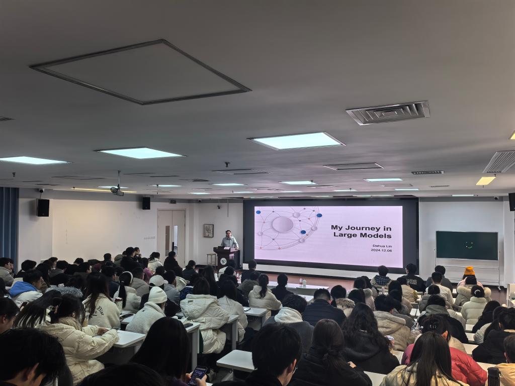 随后,林达华教授在致远厅为公司师生带来了一场题为“多模态大模型的实践与前瞻”的高水平前沿报告。在报告中,林达华教授深入剖析了多模态模型的架构、训练、部署及评测的实践观察,并详细阐述了在具体实践中所遇到的多重挑战。在此基础上,林教授还分享了他对于大模型未来技术演进和产业发展的独到见解,以及企业和学术界如何有效协同以促进科技创新的前瞻思考。
